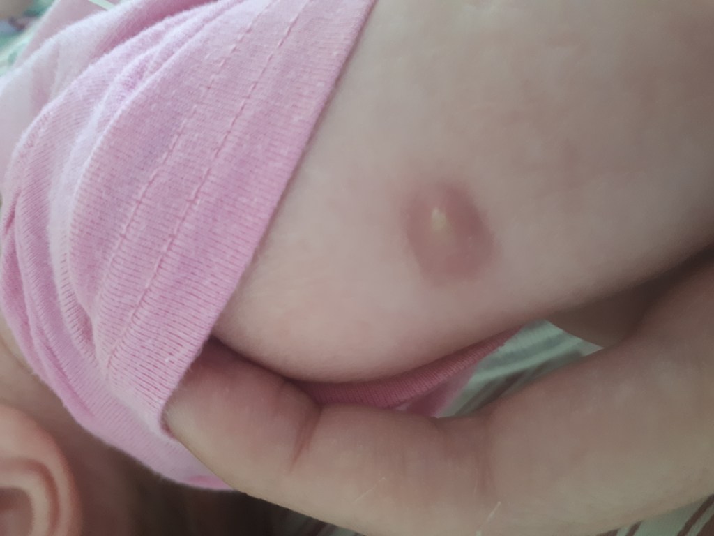As I was bathing our almost-10week old daughter one evening I saw a raised red spot on her upper right arm. It was about 1cm across and looked like an angry pimple. Is this an insect bite? An infection? No, I quickly realised, this is a very common reaction to the BCG vaccination our daughter received just after birth.