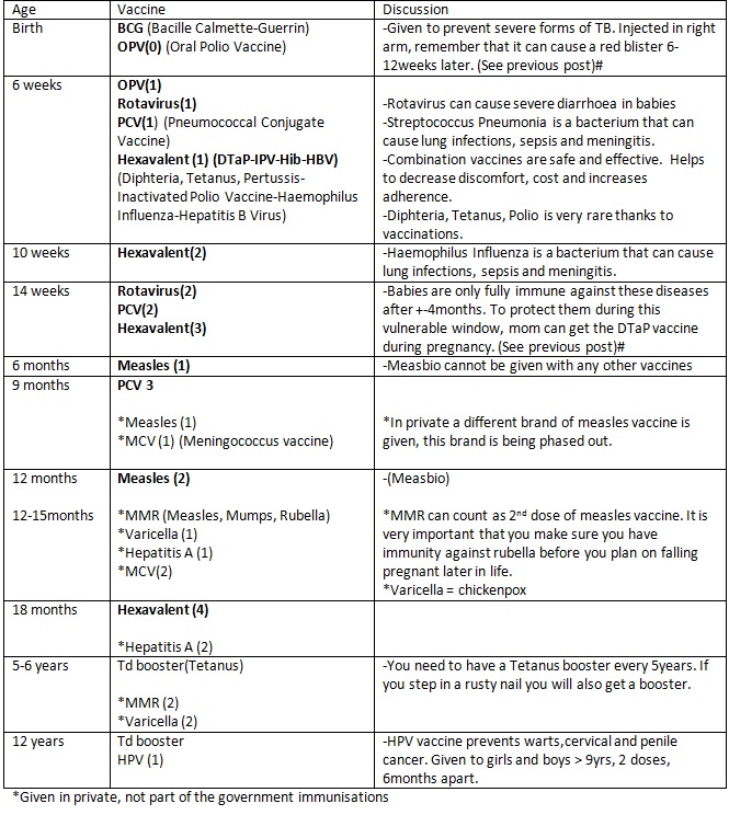 - Try to find a clinic/sister/doctor that provides immunisations free of charge. It can be very expensive if you have to pay for it privately, and until 6 months the schedules are mostly the same.